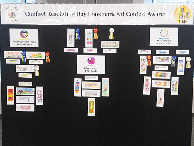 For more information about the Annual Conflict Resolution Day Bookmark Art Contest and to see the winning entries and anniversary video, visit: https://www.mdcourts.gov/macro/eventsconflictresolutionday.