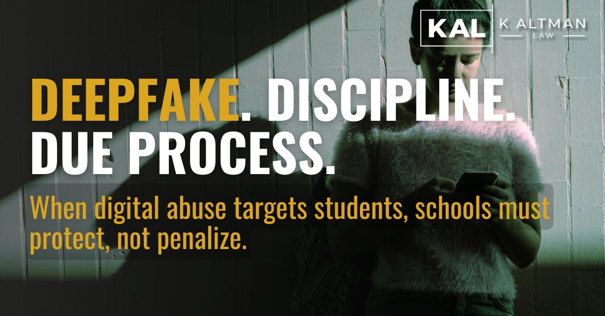 Parents whose children are targeted with deepfakes or wrongful school discipline should immediately request all investigative files, recordings, witness statements, and Title IX documentation. K Altman Law assists families in challenging unfair discipline, filing Title IX complaints, and demanding corrective action to ensure student safety and due process.